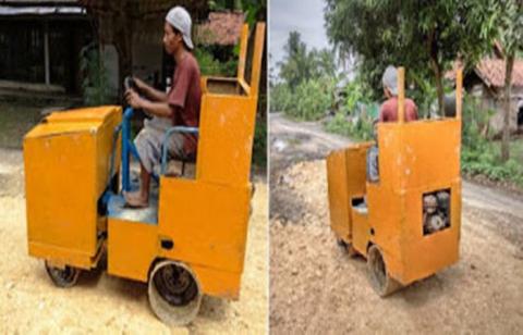Dan sepertinya Indonesia juga punya orang-orang demikian. Adalah Sariman, seorang pembuat mobil penggilas dengan bermodalkan barang bekas saja. Warga asal Dusun Sidasari, Tambaksari, Kedungreja, Kabupaten Cilacap ini mampu membuat mobil unik tersebut meski ia tidak bisa menyelesaikan sekolahnya.